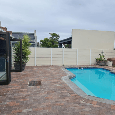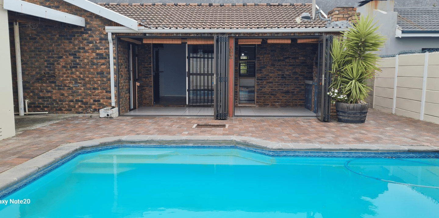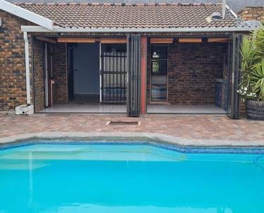 This home offers an open plan living areas with a large lounge and dining/family room with an indoor braai for those cold winter nights. The entertainment area comes with additional built-in braai, stacker doors leading out onto a enclosed, paved swimming pool area.
