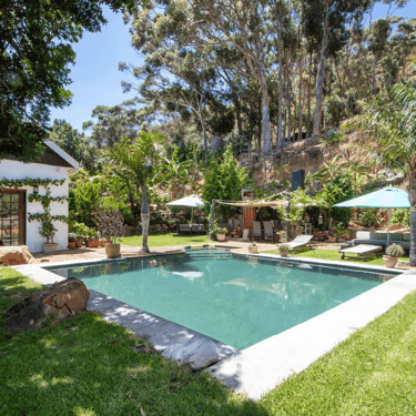 Perched on the cliffs of sought-after Mountainside, Gordon’s Bay, between Muizenberg and Cape Town, this rare heritage property offers exceptional privacy, serenity, and panoramic coastal views. Bordering a vast nature reserve and the core of the Kogelbaai UNESCO Biosphere, it enjoys a truly unique natural setting.
